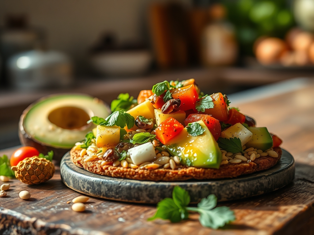 Sustituciones Inteligentes: Si no tienes masa madre, utiliza un pan de centeno denso para aumentar la fibra. Si el aguacate no está en su punto, puedes usar una base de guisantes blanqueados y triturados con menta. Para una opción sin lácteos, sustituye el feta por almendras laminadas tostadas.
